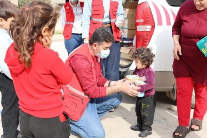 Heyva Sor a Kurdistanê alîkarî li malbatên koçber ên li bajarê Girkê Legê belav kir.