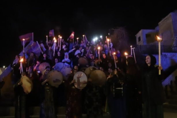 Li Mêrdînê çarçoveya 8’ê Adarê de jinan meşa şevê pêk anîn û gotin: “Jina Kurd hebe hêvî heye, jina Kurd hebe berxwedan heye, jina Kurd hebe azadî teqez dê biserkeve.”