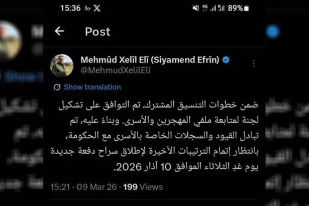 Cîgirê fermandarê Hêzên Ewlekariya Hundirîn ê Hesekê diyar kir ku QSD û hikûmeta demkî ya Sûriyeyê tomar û belgeyên dîlgirtiyan guherandine û li bendê ne ku sibe komek din a…