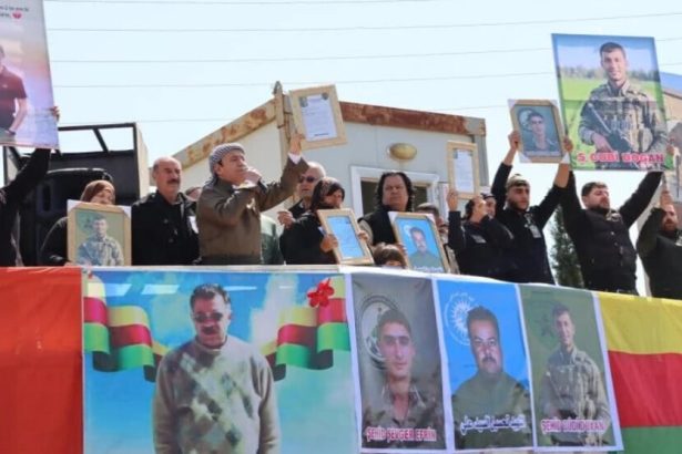Malbatên dîlgirtiyan li pêş avahiya NYˊyê ya Qamişloyê daxwaza berdana dîlgirtiyan kirin.