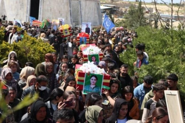 Xelkê Hesekê cenazeyê 3 şehîdan veşartin û ji bo şehîdekî merasîmek xiyabî li dar xist.