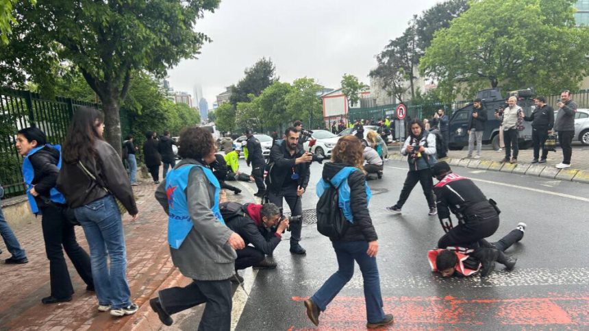 Di çalakiyan de ku dirûşmên “Taksîm a me ye, wê ya me bimîne”, “Bijî yekê Gulanê” têne qîrîn, pankartên bi nivîsên “Li ber xizaniyê rabe, xwe bi rêxistin bike, bijî 1’ê Gulanê” hatin hildan. Polîsan li gelek deveran êrîş birin ser girseya gel a ku dixwaze xwe bigihîne Taksîmê. Gelek kes bi lêdanê hatin binçavkirin.