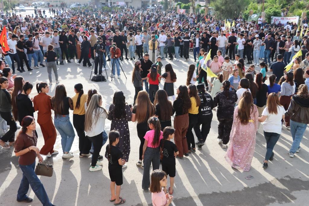 Xelkê ji kantona Firatê ji bo pîrozkirina 1’ê Gulanê Cejna Karkeran berê xwe dan qada Şehîd Egîd a navenda Kobanê û bi şahiyeke girseyî 1’ê Gulanê pîroz kirin.