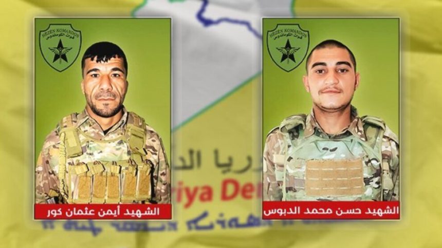 Di daxuyaniyê de wiha hatiye gotin: “2 şervanên me di qezeyekê de dema erka xwe ya leşkerî dianîn cih li Dêrazorê şehîd bûn.