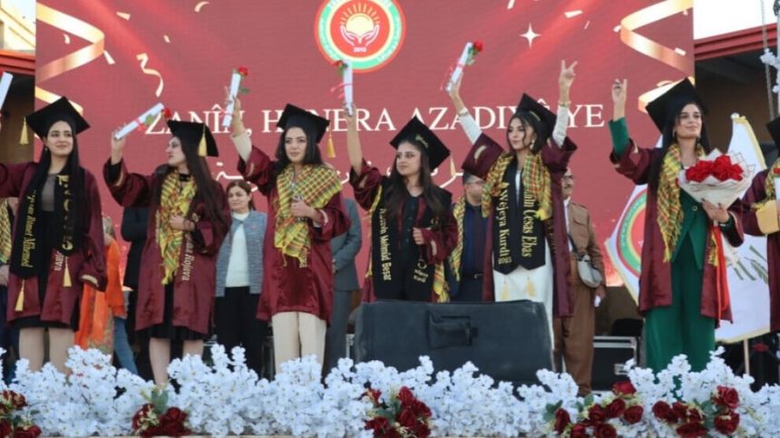 Bi dirûşma “Zanîn Hunera Azadiyê ye” Zanîngeha Rojava şahiya derçûna 211 xwendekarên beşên cuda yên zanîngehê, merasîma derçûnê li dar xist. Mrasîm li Parka Azadî ya bajarê Qamişlo hat lidarxistin.