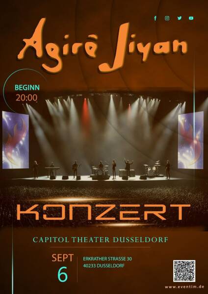 Lê endamên Agirê Jiyan li welatê xerîbiyê (Elmanya) dîsa li hev civiyan. Ev bû çend meh bi hev re provayan dikin. Art Recordsê ji bo Agirê Jiyan konserek amade kiriye. Konser 6’ê Îlonê roja Şemiyê li bajarê Düsseldorfê saat 20:00’ê destpê dike. Cihê konsêrê jî Capitol Theater Düsseldorf e.