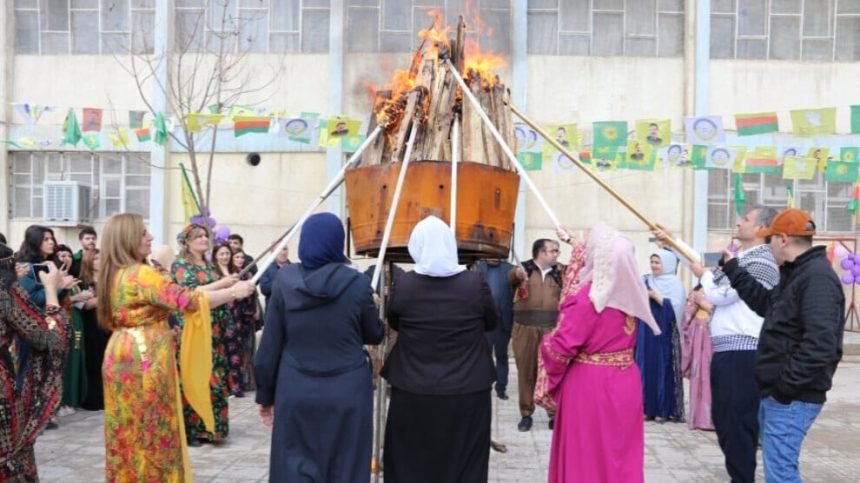 Piştre meşaleya Newrozê hat pêxxistin û li ber stranên şoreşgerî û gelêrî yên Kurdî govend hatin gerandin.