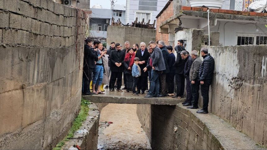Ahmet Turk û endamên DEM Partiyê hatin Kolana Koprulu ya taxa Nûr û malbatên ku malên ji ber lehiyê zirar dîtine ziyaret kirin.