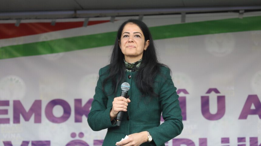 Gel her tim li qadan, li kolanan, di girtîgehan û binçavan de got rêya çareseriyê ji Îmraliyê re derbas dibe. Got rêya çareseriyê, çareseriya demokratîk ku hemû gel bi hevre bijîn e. Lê îktîdara siyasî vê yekê red dike. Di 2013’an de Rêber Abdullah Ocalan got 20 sal in em çareseriya demokratîk û aştiyê dixwazin. Got ‘ez ji çareseriyê re amade me.’ Ji wê rojê heta niha gel li ser piyan e. Gel got ‘Rêya Abdullah Ocalan rêya me ye.’ Lê hûn kerr û kor in. Em dibêjin êdî tu mafê kesî tune ku şaşiyan bikin. Vîna gel li vir e. Nûnerên gel li vir e. TJA li vir e. Gel li vir e. Tevgera jinên kurd li vir e. Ji bo çareseriyê amade ye. Ji bo gavan biavêje amade ye. Heta dawî em ê têbikoşin. Heta dawî heta çareseriyê em ê têbikoşin. Bila her kes amade be. Lê divê tişta dawî ewil nebêjin. Em dibêjin van deriyan vekin. Gel dixwaze dengê Rêber Abdullah Ocalan bibihîsin. Vekin wî derî. Gel Bahçelî jî guhdar kir. Gel Erdogan jî guhdar kir. Edî dizane kî derewan dike û kî rastiyan dibêje. Em careke din li vir ji bo çareseriya demokratîk dengê xwe bigihînin.”