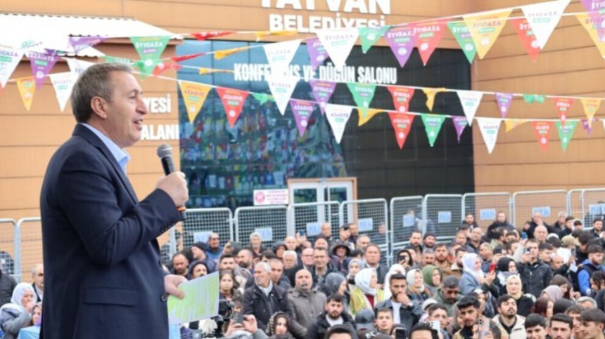 Hevserokê Giştî yê Partiya Demokrasî û Wekheviyê ya Gelan (DEM Partî) Tûncer Bakirhan li pîrozbahiyê axivî û anî ziman ku Newroza 2025’an ji ber banga dîrokî ya Rêber Apo ya 27’ê Sibatê gelekî girîng e.