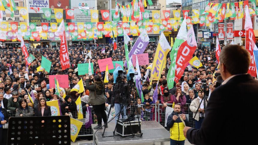 Partiya Demokrasî û Wekheviyê ya Gelan (DEM Partî) li Îdirê bi tevlibûna Hevserokê Giştî Tuncer Bakirhan û bi hezaran kesan mitîng li dar xist. Bi hezaran kesên ji gund û taxan hatin, qada mitîngê tije kirin. Welatiyan beriya destpêkirina mitîngê, xelekên govendê gerandin. Qada mitîngê bi flama û alên DEM Partiyê hatibû xemilandin. Mitîng, bi deqeyek rêzgirtinê dest pê kir. Piştre jî namzetên hevşaredariyê yên navend û navçeyan gel silav kirin. Namzetên hevşaredariyê yên Îdirê Nejla Kum û Mehmet Nûrî Guneş axivîn û gotin ku dê şaredariyê bi hev re birêve bibin û ev tişt anî ziman: “Ev dixwazin bajarê me teslîm bigirin. Em ê destûrê nedin van û bajarê xwe ji çeteyan rizgar bikin.”