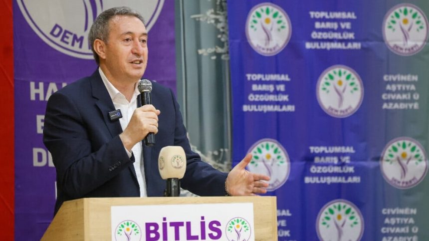 Rêxistina DEM Partiyê ya Bedlîsê bi beşdariya Hevserokê Giştî Tûncer Bakirhan û Endama Şandeya Îmraliyê û Serokwekîla Parlementoyê ya DEM Partiyê Pervîn Bûldanê li ser pêvajoya “Aştî û Civaka Demokratîk” civîna gel li dar xist. Civîn li eywaneke dawetê ya li navendê hat lidarxistin û pankartên weke “Sonda me kezîzerên me ne, Rojava rûmeta me ye” û “Bi ronahiya heqîqetê ber bi azadiyê ve” hatin daliqandin. Endam û rêveberên partiyên siyasî, nûnerên saziyên demokratîk û gelek kes tev li civînê bûn.