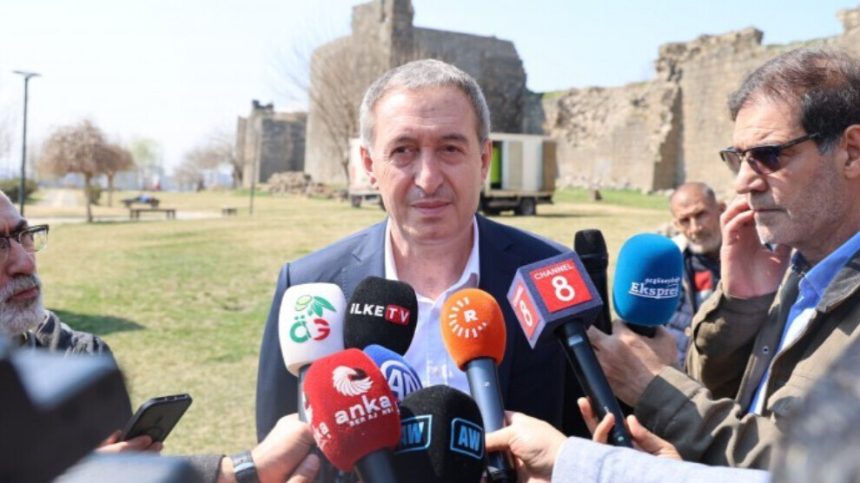 Hevserokê Giştî yê Partiya Demokrasî û Wekheviyê ya Gelan (DEM Partî) Tûncer Bakirhan piştî eşkerekirina deklarasyona Newrozê ya li Deriyê Mêrdînê yê li navçeya Sûr a Amedê bersiv da pirsên rojnamevanan.