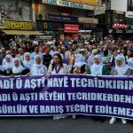 Li qada ku mitîng lê hate lidarxistin dowîzên “Ji girtiyên nexweş re azadî”, “Bi jin, jiyan, azadiyê ber bi azadiyê ve”, “Ji qirkirina jinê re na”, “Ne ji şer re ji gel re budçe”, “Ji şer re na”, “Li dijî mirinê jiyan” û “Ji tecrîdê re na” hatin hilgirtin.