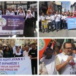 Hevserokê Giştî yê KESK’ê Ahmet Karagoz jî ev tişt gotin: “Li dijî polîtîkayên şer ên emperyalîst bijî xwişk û biratiya gelan. Li vê cîhanê êdî mirinên mirovan weke îstatîstikekê tên dîtin. Peywîra ku dikeve ser milê me gelan piştevanî û israra di aştiyê de ye. Yekane tişta ku mirovahiya me xelas bike aştî ye. Desthilat bi zext û tayînkirinên qeyûman dîsa tê rojevê. Em vê polîtîkayê şermezar dikin. Tirkiye di mijara azadiyê de di nava 10 welatên herî xerab a cîhanê de ye. Ev tabloye jî têra heye ku welat di çi rewşê de ye. Em ji kesên ku hewl didin me bêdeng bikin re dibêjin; em natirsin û qet bi paş ve gavê jî naavêjin. Tişta ku weke nan û av û hewa pêdiviya me pê heye aştî ye. Em ê parastina aştiyê têkoşîna ji bo vê bidomînin. Em careke din kesên ku li ser erdnîgariya me xwînê dirijînin û anîna asta ku mirov nikare lê bijî şermezar dikin.”