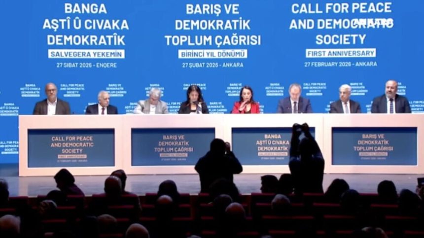 Hevseroka Giştî ya DEM Partiyê Tulay Hatîmogullari axaftina destpêkê kir. Tulay Hatîmogullari destnîşan kir ku beriya salekê deriyê dema nû hate vekirin û got, “27’ê Sibatê Banga Aştî û Civaka Demokratîk bû destpêka demekê.”
