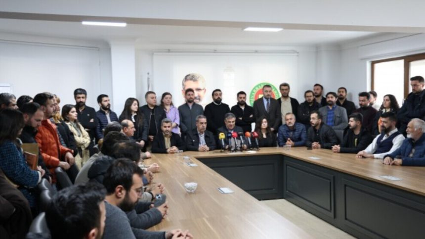 Baroya Amedê bi armanca protestokirina betalkirina erka Rêveberiya Baroya Stenbolê ya ji aliyê daraza desthilatdar ve daxuyaniyek da. Hevserokê Giştî yê Komeleya Mafên Mirovan (ÎHD) Huseyîn Kuçukbalaban û endamên Komaleya Hiqûqnasên ji bo Azadiyê (OHD) beşdarî civîna li avahiya Baroyê bûn.