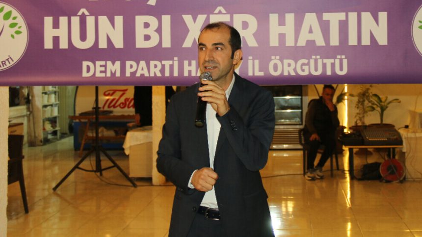 Hevserokê Giştî yê Partiya Herêmên Demokratîk (DBP) Keskîn Bayindir beşdarî civîna piştgiriyê ku ji aliyê Rêxistina Bajêr a Hatayê ya Partiya Wekhevî û Demokrasiyê ya Gelan (DEM Partî) ve hatî lidarxistin, bû. Civîn li Îskenderûnê hate lidarxistin û partiyên siyasî û nûnerên sendîkayên bajêr û gelek kes beşdarî civînê bûn.