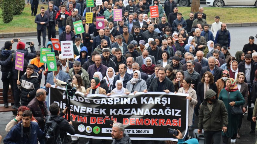 Meş li Xaçerêya Basinê ku li ber şaredariyê ye bi dawî bû û li vir daxuyanî hat dayîn. Ji ewil Hevseroka DEM Partiyê ya Êlihê Songul Korkmaz, Hevserokê DEM Partiya Sêrtê Eşref Tekîn, Hevşaredarê Sêrtê Mehmet Kaysi, Hevşaredarê Êlihê Yeşîl Işik axivîn û nerazîbûn nîşanî desteserkirina îradeya gelê Êlihê dan.