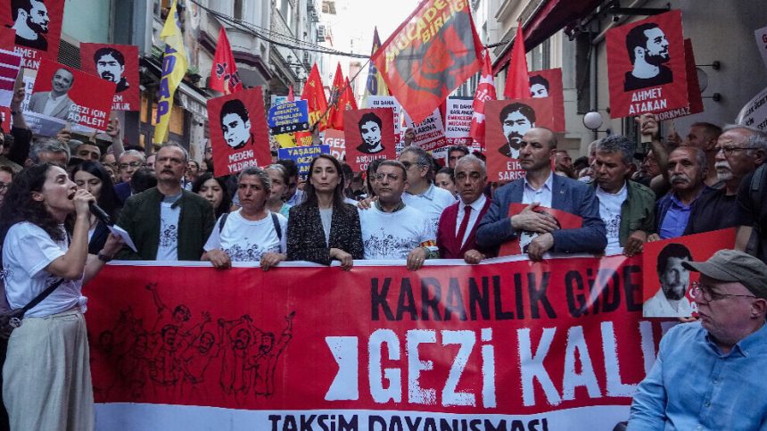 Piştevaniya Taksîmê bi boneya 11’emîn salvegera Berxwedana Geziyê li Beyoglûyê daxuyaniyek da.Bi sedan kes tevlî çalakiyê bûn. Hevseroka Giştî ya Partiya Wekhevî û Demokrasiyê ya Gelan (DEM Partî) Tulay Hatîmogûllari û parlamenterên din yên partiyên siyasî, dayika Berkîn Elvan yê di Berxwedan Geziyê de hat qetilkirin, Gulsum Evlan û gelek rêxistinên jinan û civaka sivîl tevlî bûn.