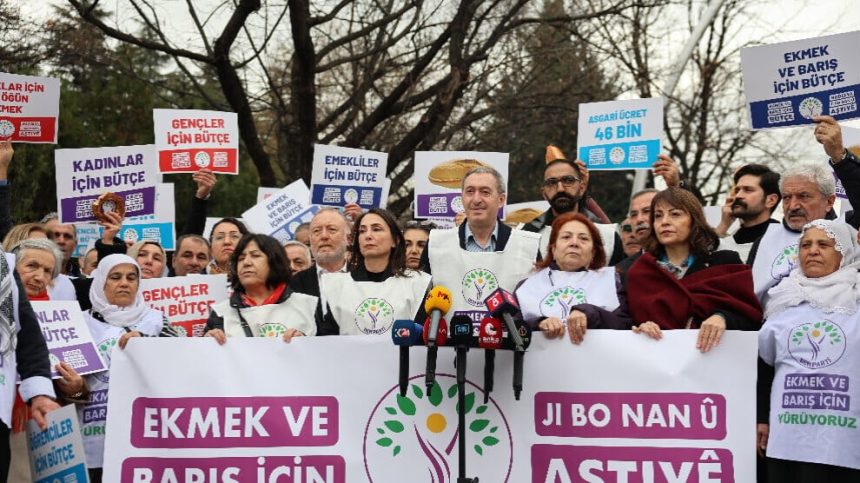 Tûncer Bakirhan jî anî ziman ku ji sermayeyê re, ji şer re, ji lobiyên faîzê re budçe hatiye amadekirin û got, “Em bang li Meclîsê dikin: Guh bidin daxwazên civakê. Budçeya ku we ji bo sermaye û lobiyên şer re kiriye carekê ji bo kedkaran bikin.”
