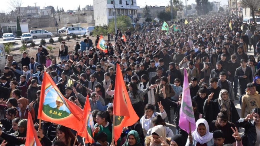 Meş ji Qada Jina Azad destpê kir. Di meşê de alên YPJ û QSD’ê, wêneyên Şehîdan û yên şehîdên komkujiya duh a li bajarê Sirînê, hatin hildan û bê navber dirûşmên “Şehîd Namirin”, “Bijî berxwedana QSD û YPJ’ê” û “Berxwedan jiyan e” hatin qîrkirin.