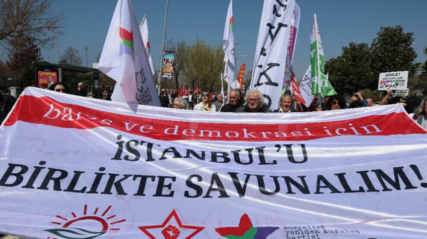 Hêzên Ked, Aştî û Demokrasiyê yên Stenbolê ku Partiya Wekhevî û Demokrasiyê ya Gelan (DEM Partî) jî di nav de ye beşdarî mîtîngê bûn. Hêzên Ked, Aştî û Demokrasiyê ku li Rawestgeha Marmarayê ya Îdealtepe kom bûn pankarta “Em bi hev re Stenbolê biparêzin” hildan. Di kortejê de gelek caran dirûşmên mîna “Jin, jiyan, azadî”, “Li dijî faşîzmê mil bi mil”, “Maf, hiqûq, edalet” û “Rizgarî bi tenê nabe, an em hemû bi hev re, an jî ne yek ji me” hatin berzkirin.
