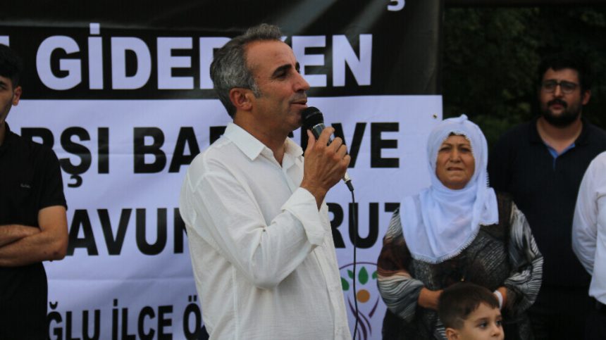 Mûrat Kalmaz di çalakiyê de axivî û diyar kir ku sed sal in li Kurdistanê şerekî qirêj tê meşandin û anî ziman ku gelê Kurd li hemberî vê yekê berxwedaneke mezin nîşan daye. Kalmaz got, “Tu kes nikare vîna gelê Kurd bişkîne. Ez dixwazim vê ji kesên ku plana tinekirina me dikin re bibêjim. Hûn ê winda bibin. Faşîzma AKP-MHP’ê wê ji holê rabe. Xeta aştiyê rakirina polîtîkayên tecrîdê ye. Beriya her tiştî divê tecrîda li Îmraliyê bê rakirin. Heta ku tecrîd û polîtîkayên zextê yên li ser gelê Kurd bidome, li vî welatî kes nikare behsa aştiyê bike. Yên ku dixwazin aştiyê ava bikin divê pêşî tecrîda li ser Birêz Abdullah Ocalan rakin. Divê pêvajoyeke nû ya muzakereyê bê destpêkirin û Ocalan weke îrade bê naskirin.”