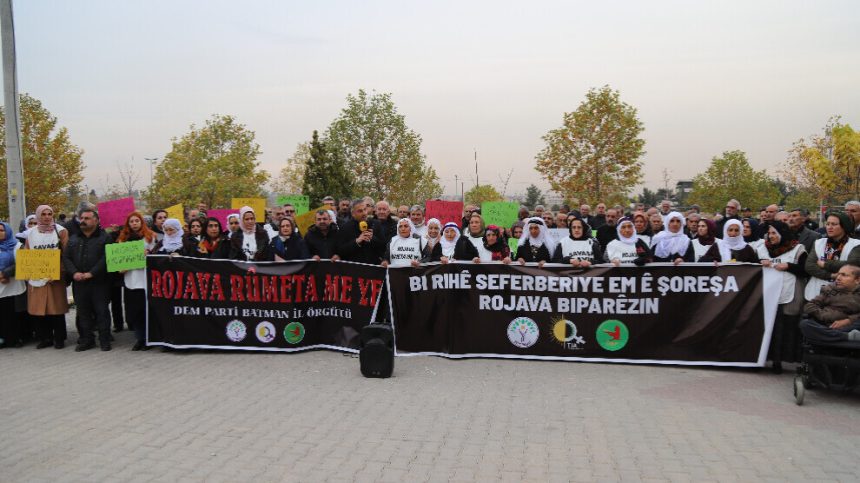 Piştre çalakiya nobetê daxuyanî hat dayîn. Hevseroka DEM Partiyê ya Êlihê Songul Korkmaz destpêkê axivî, diyar kir ku êrîşên li ser Bakur û Rojhilatê Sûriyeyê ji 27’ê Mijdarê û vir ve dewam dikin û got, “Çeteyên qirêj li dijî jiyana demokratîk şer dan destpêkirin. Şer çiqasî bidome jî em ê heta dawiyê piştgiriyê bidin gelê Rojava. Heta ku ev şerê qirêj bi dawî bibe em ê çalakiyên xwe bê navber bidomînin. Rojava rûmeta me ye. Em ê rûmeta xwe biparêzin.”