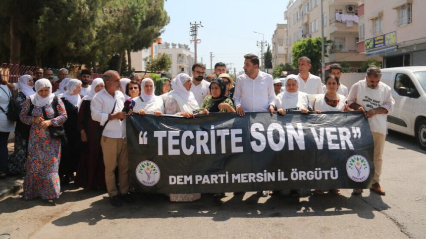 Çalakiya ku xizmên girtiyan li Mêrsînê bi dirûşmeya “Dawî li tecrîdê bîne” dane destpêkirin, keta hefteya 11’emîn. Komeleya Alîkarî bi Malbatên Girtî û Hikûmxwaran re ya Çukurovayê (Çukurova TUAY-DER), DEM Partî û gelek kes piştgirî dan çalakiyê. Di çalakiyê de pankarta bi nivîsa “Dawî li tecrîdê bîne” hate vekirin û beşdaran pêşmalkên “Tecrîd sûcê mirovahiyê ye” ya bi Tirkî û Kurdî li xwe kirin. Polîsan girseya ku xwestin bimeşin pêşiya avahiya AKP’ê, asteng kirin. Girseyê bi dirûşmeyên “Bijî berxwedana zindanan” û “Jin, jiyan, azadî” çalakiya rûniştinê lidarxistin. Dayika Aştiyê Meryem Erbey di çalakiyê de axivî û anî ziman ku ew weke dayik şer naxwazin û got: “Em naxwazin kes bimire. Bila tecrîda li ser Abdullah Ocalan û girtiyên din bi dawî bibe”