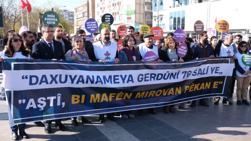 Baroya Amedê, Komeleya Mafên Mirovan (ÎHD), Komeleya Jinan a Rosayê, Weqfa Mafên Mirovan a Tirkiyeyê (TÎHV), Komeleya Hiqûqnasên ji bo Azadiyê (OHD) û Odeya Bijîşkan bi boneya Hefteya Mafên Mirovan çalakiya hevpar li dar xistin. Di çarçoveya çalakiyê de ji Qada Şêx Seîd heta Deriyê Sarayê meş hat lidarxistin. Di meşê de pankarta “Aştî, bi mafên mirovan pêkan e” hate hilgirtin. Di meşê de gelek caran dirûşmên “Na ji şer re aştî a niha” û “Jin, jiyan, azadî”hatin berzkirin.
