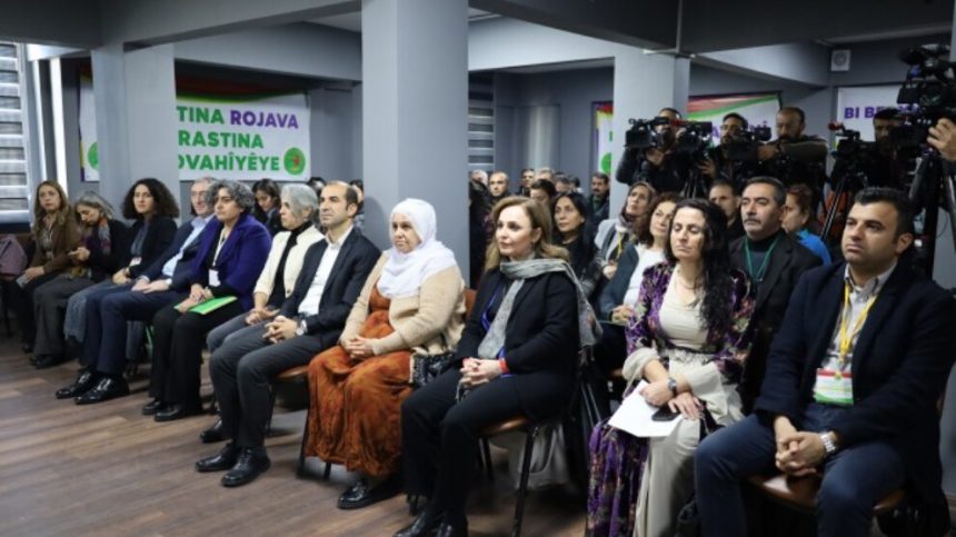 Partiya Herêmên Demokratîk (DBP) beriya 7’emîn Kongreya xwe ya Asayî ya ku wê di 12’ê çileya 2025’an de li Enqereyê bê lidarxistin, bi dirûşma “Em di bin pêşengiya îradeya teorîk û pratîk de civaka azad ava dikin” konferansek lidar dixe. Konferansa ku li avahiya Rêxistina DBP’ê ya Amedê pêk tê, Hevserokên DBP’ê Çîgdem Kiliçgûn Uçar û Keskîn Bayindir, Hevserokê Kongreya Civaka Demokratîk (KCD) Berdan Ozturk, Hevserokê Giştî yê Partiya Wekheviya Gelan û Demokrasiyê (DEM) Tuncer Bakirhan, hevşaredar, gelek nûnerên partî û rêxistinên sivîl beşdar bûn.