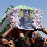 Di pêşwazîkirina de bi hezaran kes; biçûk û mezin amade bûn, wêneyên şehîd hildan û dirûşmên “Bi can bi xwîn em bi te re ne ey şehîd” û “Şehîd namirin” berz kirin.