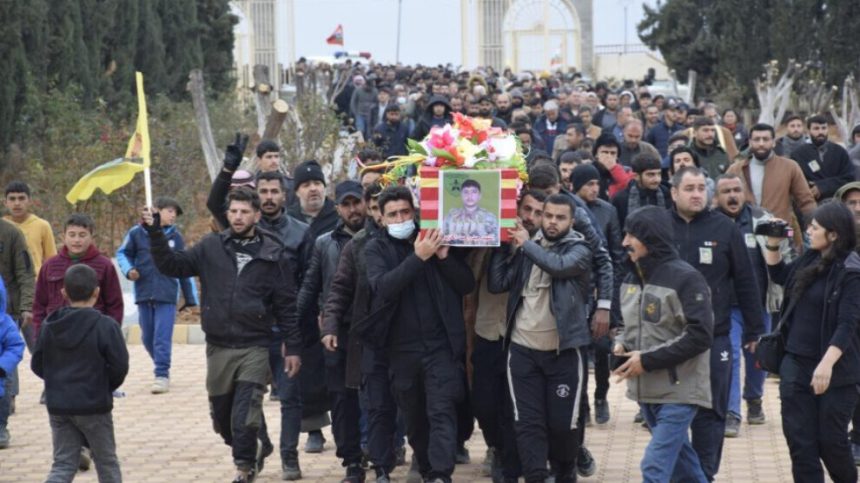 Şêniyên bajarê Dirbêsiyê yê kantona Cizîrê, endamên sazî û meclisan li Goristana Şehîd Rustem Cûdî ya gundê Berkevirê kom bûn û cenazeyê şervanê Hêzên Komandos ên Hêzên Sûriya Demokratîk (QSD) şehîd Demhat Dirbêsiyê (Heyder Ehmed El Xizêm) veşartin. Demhat Dirbêsiyê di 21ˋê Kanûnê de di bersivdana êrişên dewleta Tirk a dagirker û çeteyên wê li dijî bajarokê Sirînê yê başûrê Kobanê de şehîd bû.
