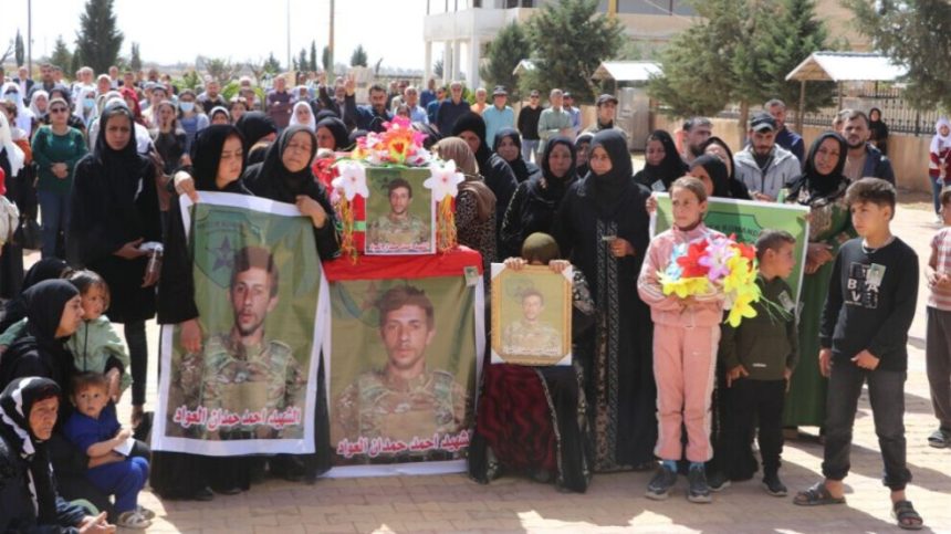 Endama Meclîsa Malbatên Şehîdan a bajarê Hesekê Necah Hewas belgenameya şehadetê ya şehîd Ehmed El Ewad xwend û radestî malbata wî kir.