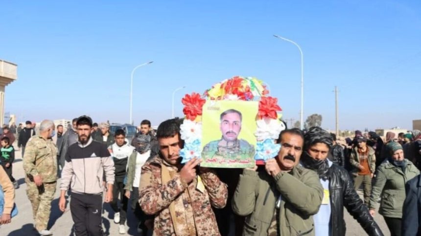 Şervanê QSD’ê Elî (Hisên Elî El Hisên) ku 17’ê Kanûnê li Tebqayê dema erka xwe bi cih dianî şehîd bûbû, li pakrewangeha bajarê Tebqayê hat veşartin. Bi sedan şêniyên kantona Tebqayê û koçberên Efrîn-Şehbayê, nûnerên Rêveberiya Xweser, saziyên civaka sivîl, tevgerên siyasî û hêzên leşkerî û ewlehiyê beşdarî merasîma cenaze bûn.