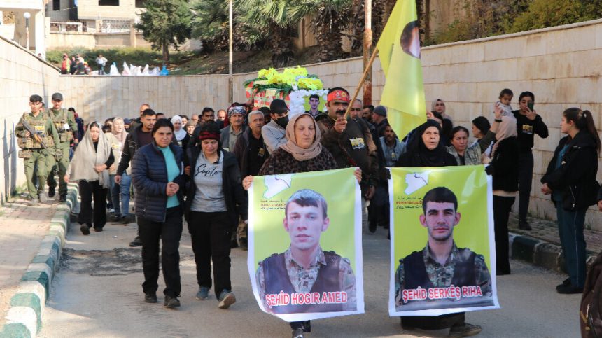 Şêniyên Dêrik, Girkê Legê, Çilaxa yên kantona Cizîrê ji bo şervanên QSD’ê Hogir Amed (Mihemed Can) û Serkêş Riha (Mustafa Kaytan) ên ku di 11’ê Mijdarê de li Hesekê din encama teqîna mayinê de şehîd bibûn, li Şehîdgeha Xebat Dêrik hatin ba hev.