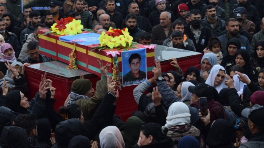 Cenazeyê Endamê Hêzên Ewlekariya Hundirîn Rêzan Behcet Silêman ku 18’ê Sibatê dema erka xwe bi cih dianî şehîd bûbû, îro bi merasîmeke girseyî li Pakrewangeha Şehîd Delîl Sarûxan a bajarê Qamişloyê hat veşartin.