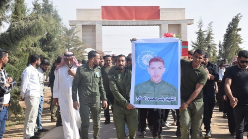 Şêniyên bajarê Şedadê yê kantona Cizîrê, endamên hêzên ewlehiyê û leşkerî, saziyên sivîl, kesayetên civakî li goristana şehîdan a bajarê Şedadê kom bûn.
