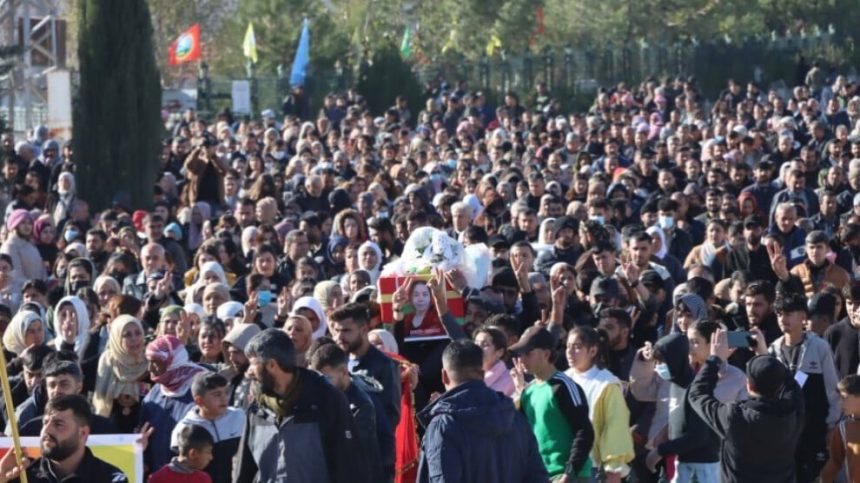 Bi sedan şêniyên kantona Firatê, endamên saziyê Rêveberiya Xweser, partiyên siyasî, rêxistinên jinan cenazeyê endama Tevgera Civaka Demokratîk (TEV-DEM) Zozan Nebo ya 15`ê Kanûnê (2025) ji ber nexweşiyê li Reqayê şehîd bûbû, îro bi merasîmeke girseyî li Pakrewangeha Şehîd Dîcle ya Kobanê veşartin.