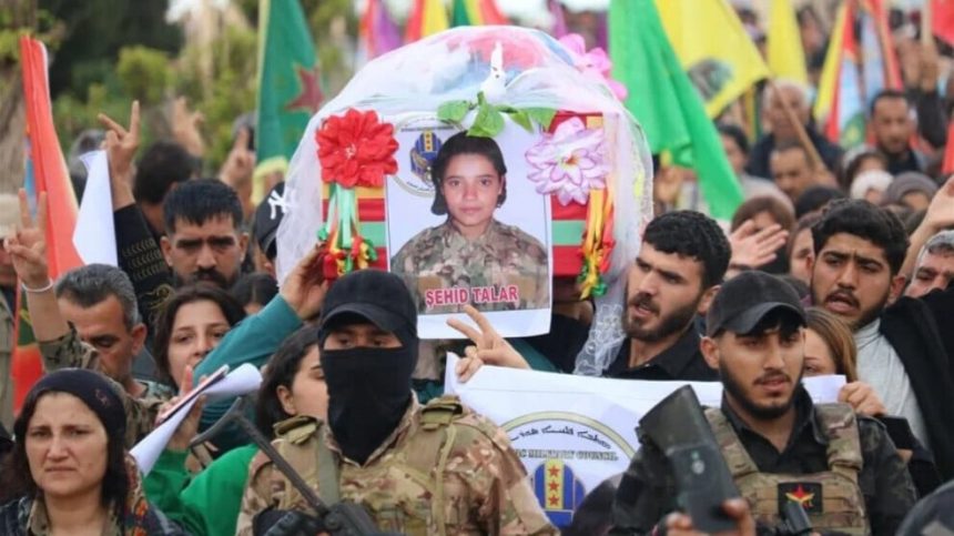 Cenazeyê Şervana Hêza Jinan a Ermen-Tabûra Şehîd Nûbar Ozanyan şehî Talar (Nesrîn Şukrî) ku 8’ê Nîsanê dema erka xwe bi cih dianî li Hesekê di encama qezayê de şehîd bû, îro bi merasîmekê li Pakrewangeha Şehîd Rustem Cûdî ya gundê Berkevirê yê Dirbêsiyê hat veşartin.