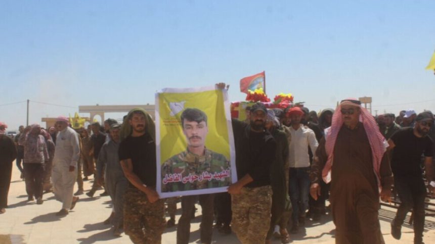 Ji fermandarên QSD’ê Mihyedîn Dêrik jî di axaftina xwe soz da malbatê şehîd û beşdaran ku li dijî hewldanên dagirkirina Herêma Bakur û Rojhilatê Sûriyeyê bisekinin.