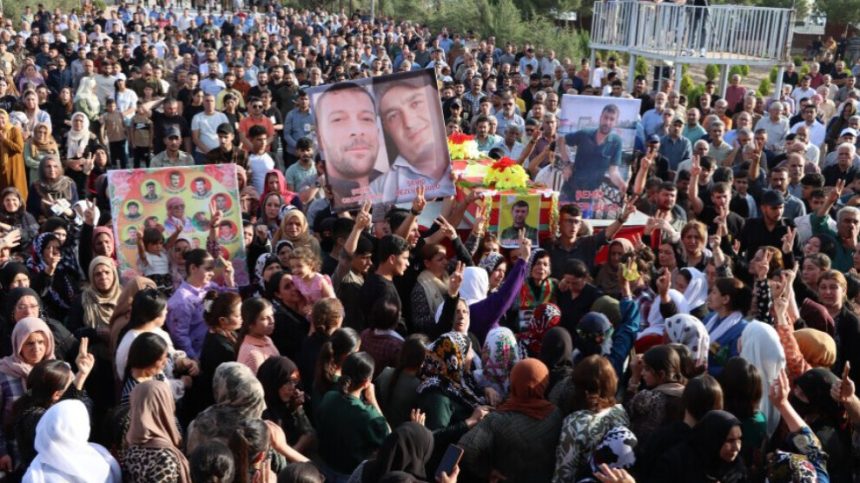Di dawiya merasîmê de cenazeyê şehîd bi tilîliyên dayikan û dirûşmeyên “Şehîd namirin” spartin axê.