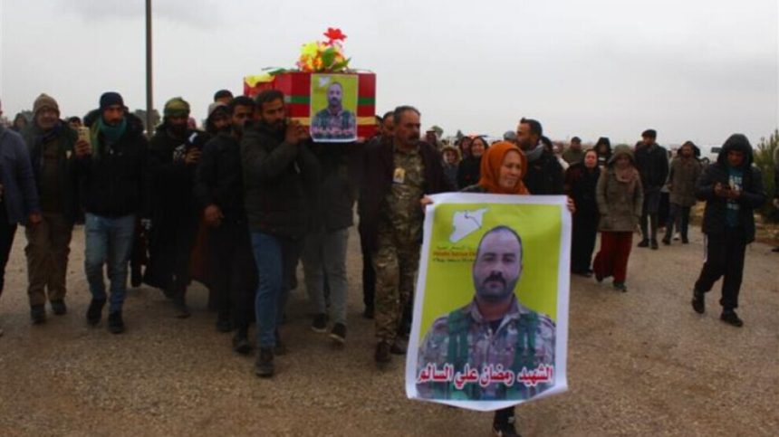 Hevserokê Meclîsa Malbatên Şehîdan a Til Temirê Mihemed Eliyat axivî û got: “Şehîd Remadan Elî El Salim, 13 sal e şervanê Yekîneyên Parastina Gel (YPG) û QSD’ê ye. Di oxira parastina welatê xwe de canê xwe feda kir.”