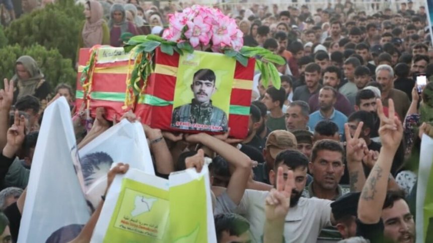Cenazeyê şehîd bi tilîliyên dayikan û dirûşma “Şehîd namirin” hatin berzkirin.