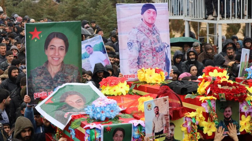 Piştre şervanan cenazeyên hevrêyên xwe yên şehîd hilgirtin ser milê xwe û bi dirûşman spartin axê.