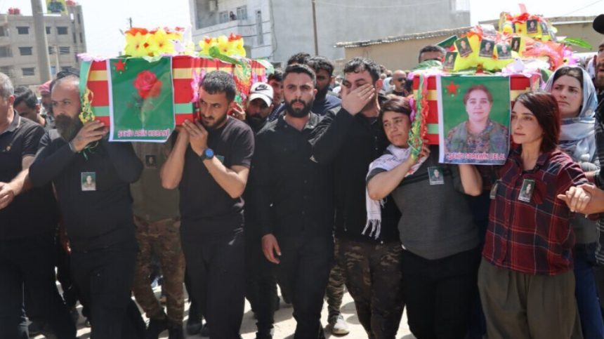 Gelê Qamişlo cenazeyên şervanên Yekîneyên Parastina Jin (YPJ) Sorxwîn Celal û Arîn Kobanê bi merasîmekê li Şehîdgeha Şehîd Delîl Sarûxanê hat veşartin.