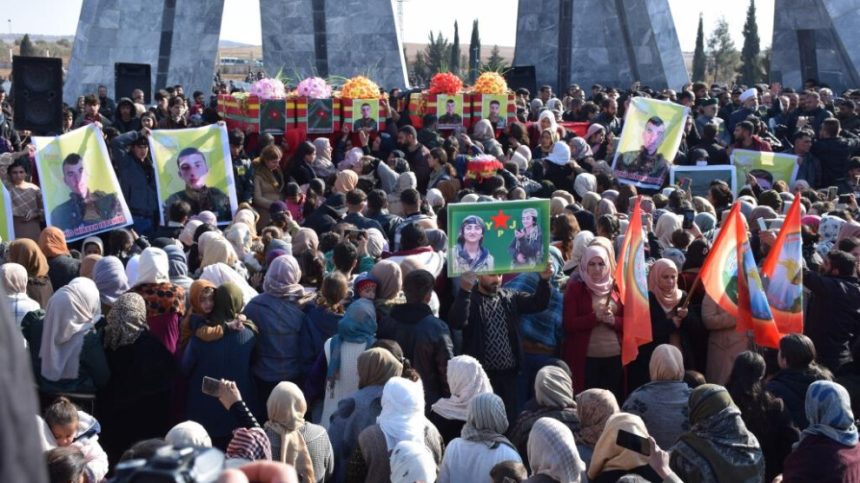 Bi hezaran kes ji şêniyên Kantona Firatê, nûnerên sazî û dezgehên girêdayî rêveberiya xweser bi merasîmeke bi heybet şervanê QSD`ê Zûhêr (Zûhêr Elî), Mêrxaz ( Mêrxaz Ibrahîm), Mistefa ( Misatefa Hemo) ku di 3`ê Çile li Cirniyê, her wiha şervanên YPJ`ê Sozdar (Zêneb Ebdullqadir), Rojhilat Ereb (Fatme Melek) ku di 2`ê Çileyê de li Bendava Tişrînê şehîd bûn, li Şehîdgeha Şehîd Dîcle ya li başûrê Kobanê veşartin.