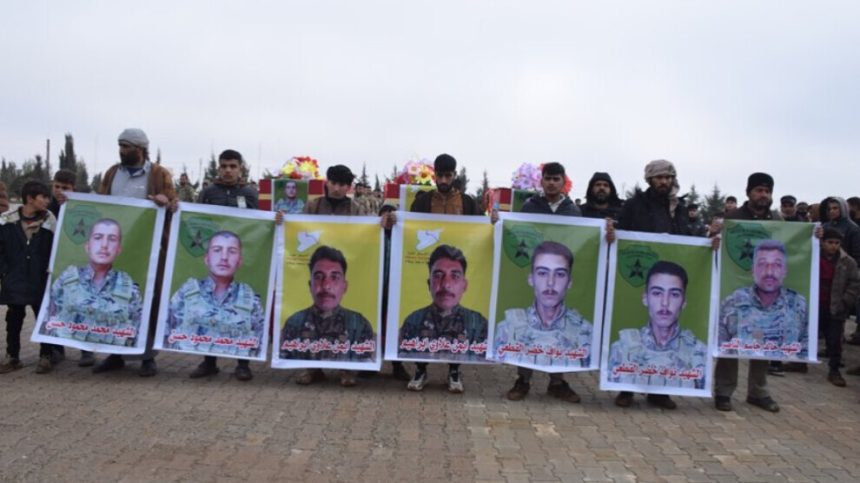 Şervanê QSDˈê Hemze (Eymen Îbrahîm) ku 25ˈê Kanûnê li Zirganê şehîd bûbû û şervanên Hêzên Komandos Xalid (Mihemed Mihsin) û Cesar (Newaf El Qetî) ku 25ˈê Kanûnê li Dêr Hafirê şehîd bûbûn, îro bi merasîmekê li Pakrewangeha Şehîdên Şedadê hatin spartina axê. Di merasîmê de şervanê Hêzên Komandos Umer (Xalid El Nasir) jî ku 30ˈê Mijdarê li Şehbayê şehîd bûbû, hat bîranîn.