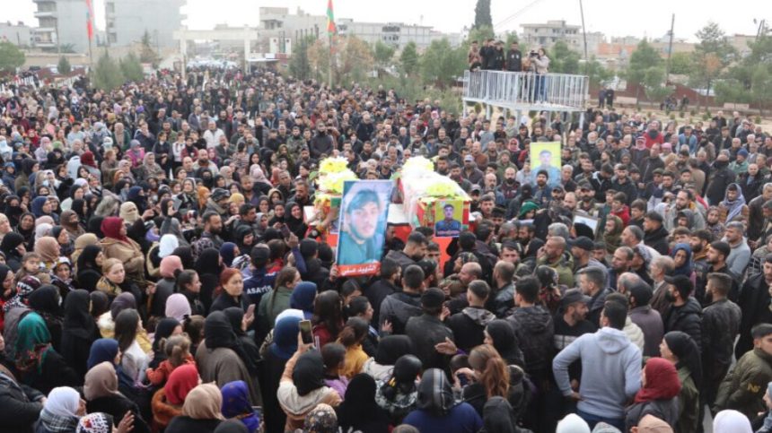 Ji bo şervanê Hêzên Sûriyeya Demokratîk (QSD) Elî Qamişlo (Mihemed Ebdulah) ku 2’yê Çileyê li Şedadê şehîd bûbû û şervanê QSD’ê Zagros Qamişlo (Ehmed El Mihemed) ku 7’ê Kanûna 2024’an li ser rêya Helebê şehîd bûbû, li Şehîdgeha Şehîd Delîl Sarûxan a li bajarê Qamişloyê merasîm hat lidarxistin.